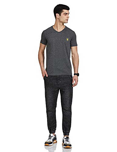 JONNEY Men’s Cotton Blended Regular Fit V-Neck T-Shirt (Dark Grey, XX-Large)