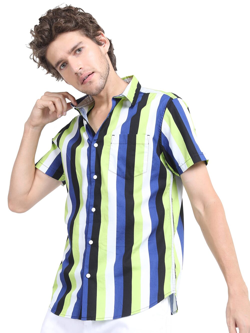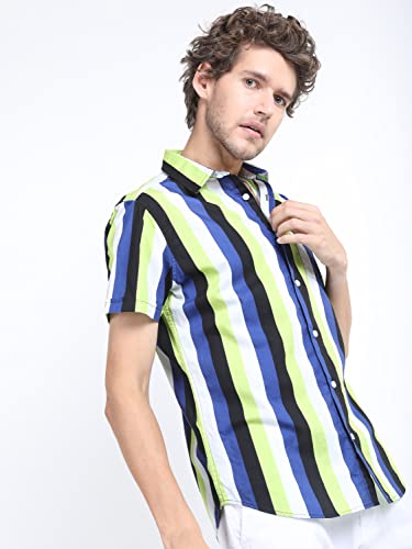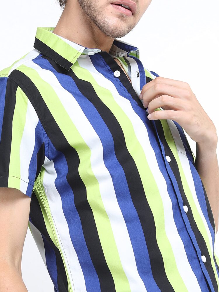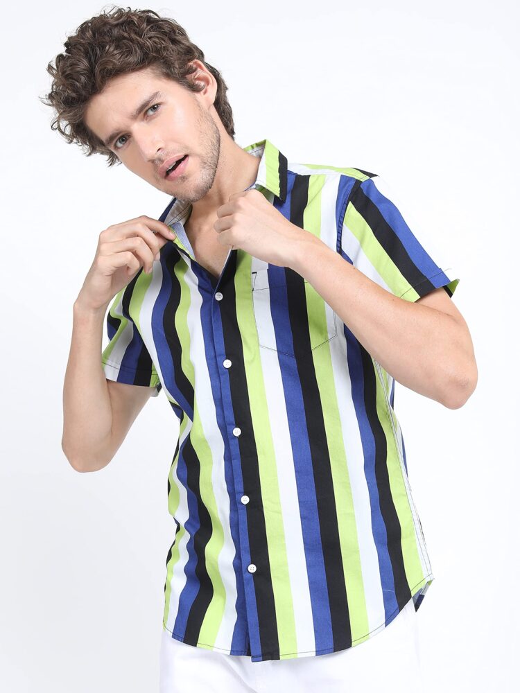 • Add a pop of color to your wardrobe with this Men’s Blue Slim Fit Striped Casual Shirt, featuring bright color stripes for a bold and stylish look pair it with jeans or chinos for an effortlessly trendy vibe.