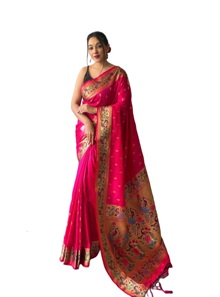 - Fabric: Premium Pure Paithani Silk saree with matching blouse piece