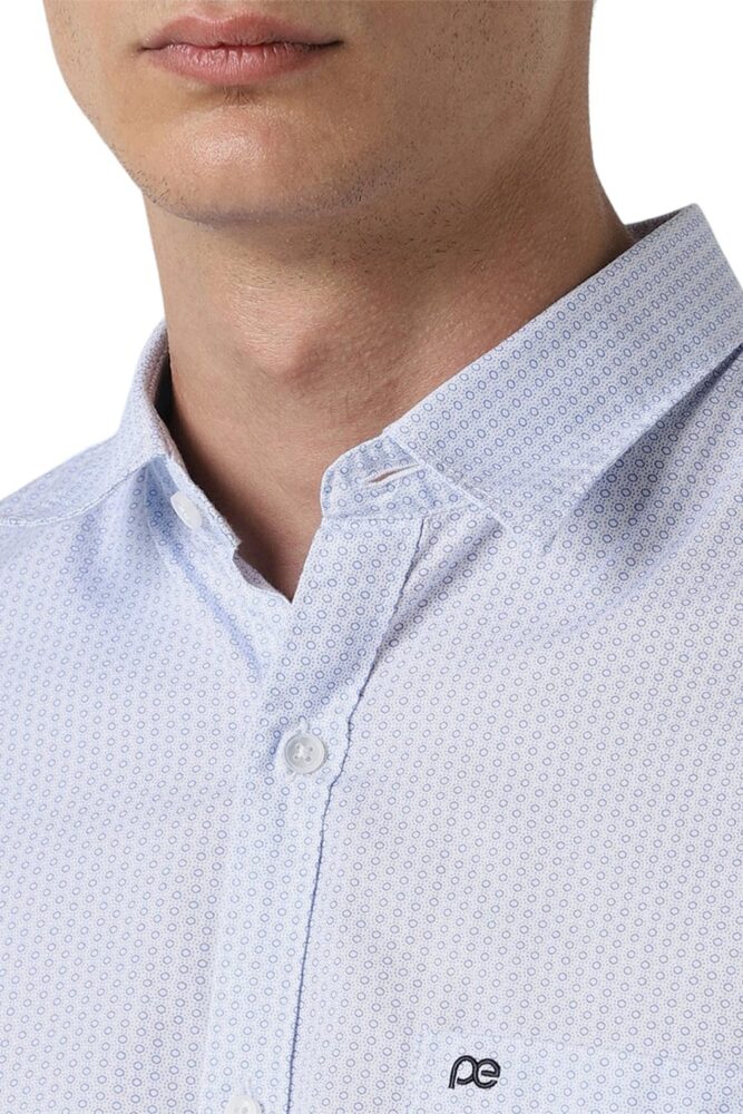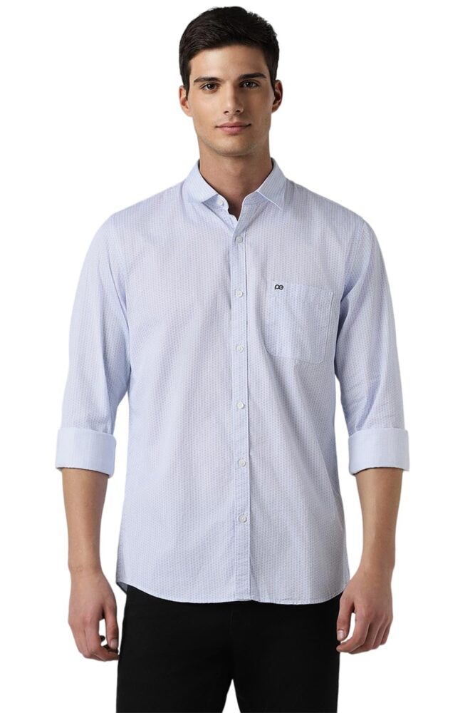 This Brown Print Casual shirt from Peter England Casuals is tailored in Slim Fit. Crafted in 100% Cotton features a Regular Collar and Full Sleeves .