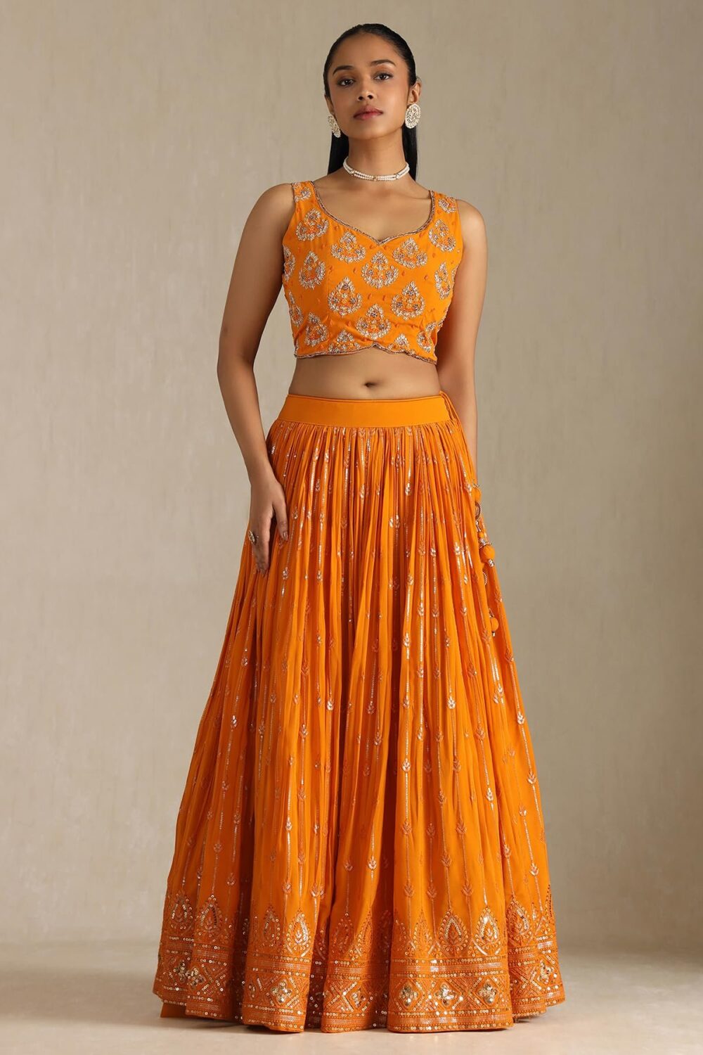 Soch Womens Orange Georgette Embroidered Ghagra Choli With Stone Work