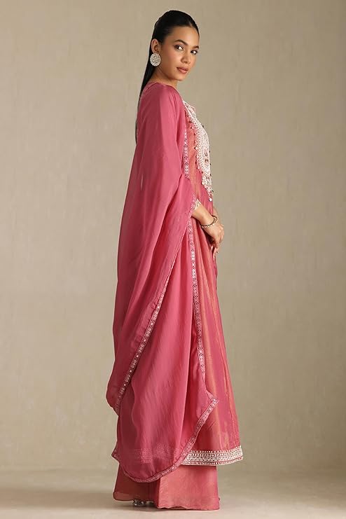 Soch Womens Onion Pink Tissue Suit Set With Cutdana