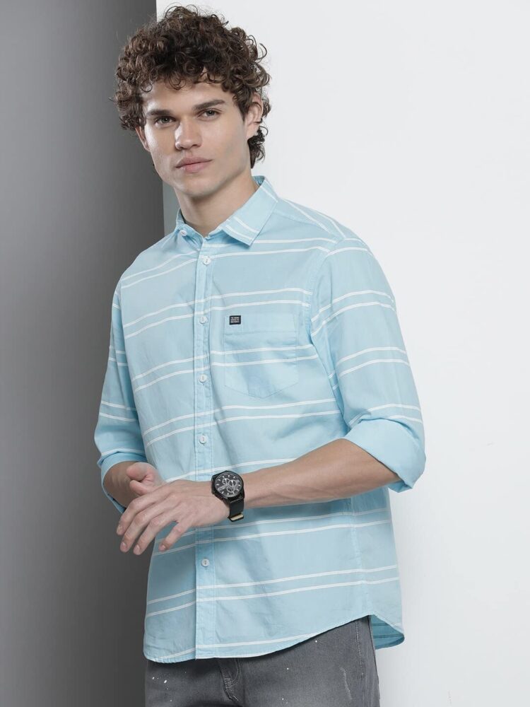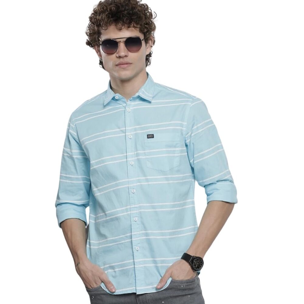 • Features: Slim Fit Striped Casual Shirt for Men with a Spread Collar, Full Sleeves, Regular Length. Designed with a Curved Hemline, 1 Patch Pocket, and a Button closure. Whether you’re dressing for a casual day out, a formal event, a business meeting, a party, birthday, wedding, anniversary, or any special celebration, our collection promises the perfect blend of comfort and elegance for every occasion.