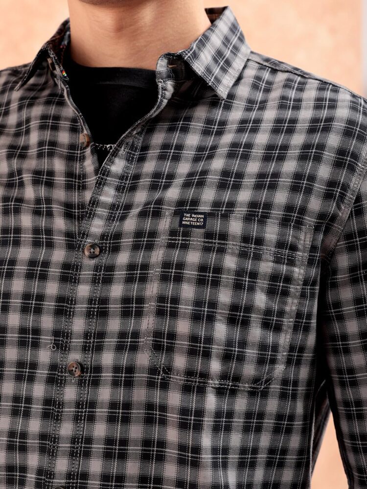 The Indian Garage Co Checks Casual Shirts Slim Fit Black Large