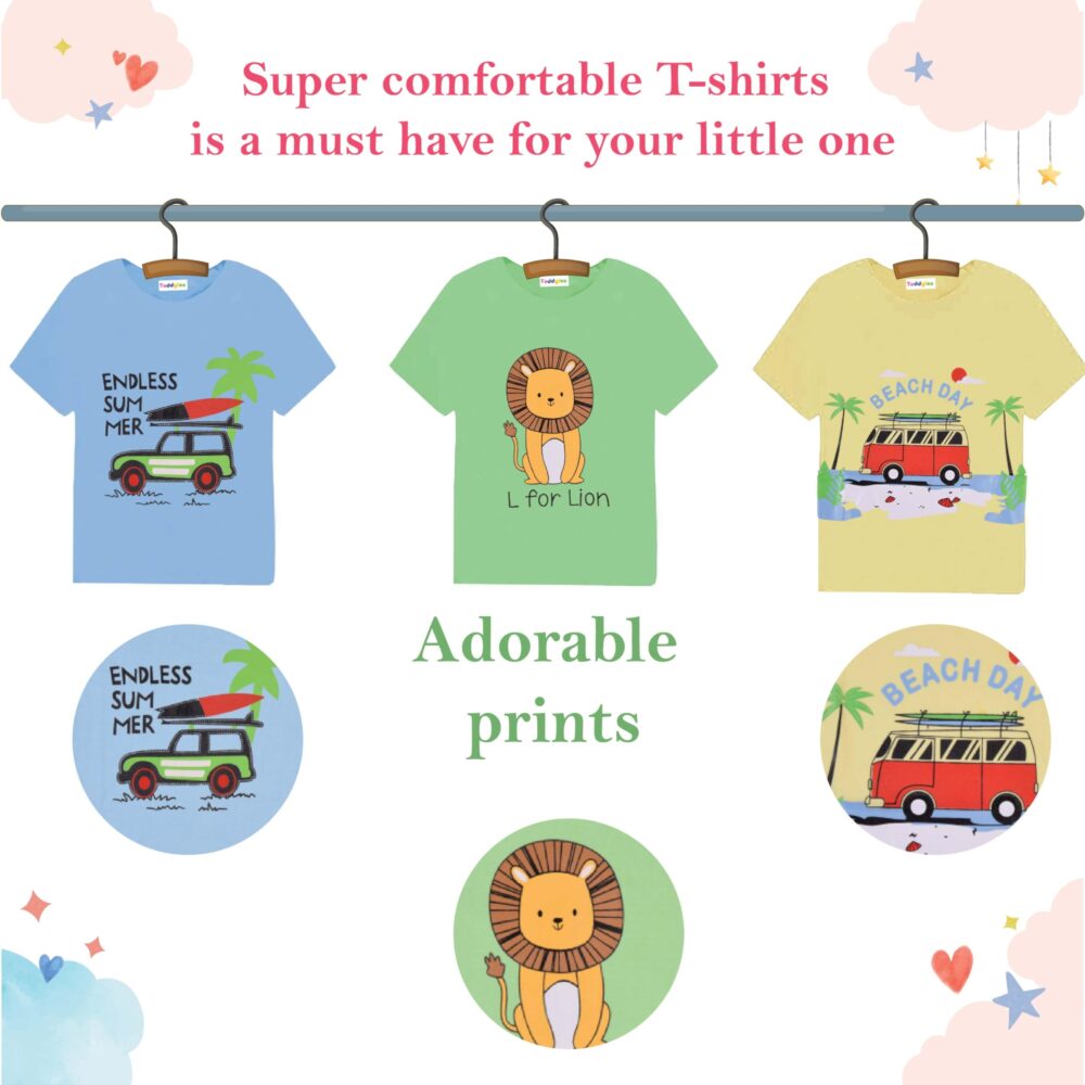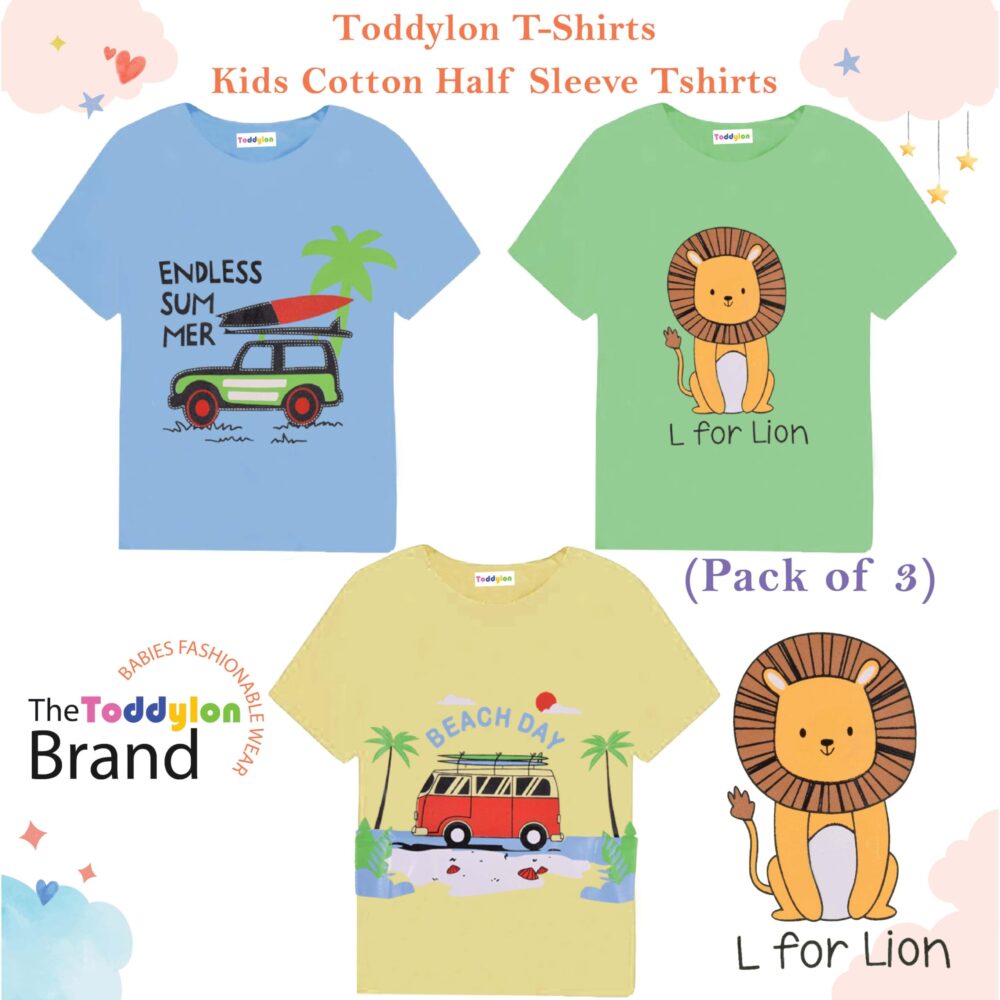 - Material- The T-shirt set from Toddylon is made of cotton fabric which makes the T-shirts breathable and soft on the skin. This makes these unisex tee shirts ideal for all-day wear. boys tshirts; t-shirt for boys; tshirt for girls; tshirts for kids; tees; half sleeve tshirt; shirt.