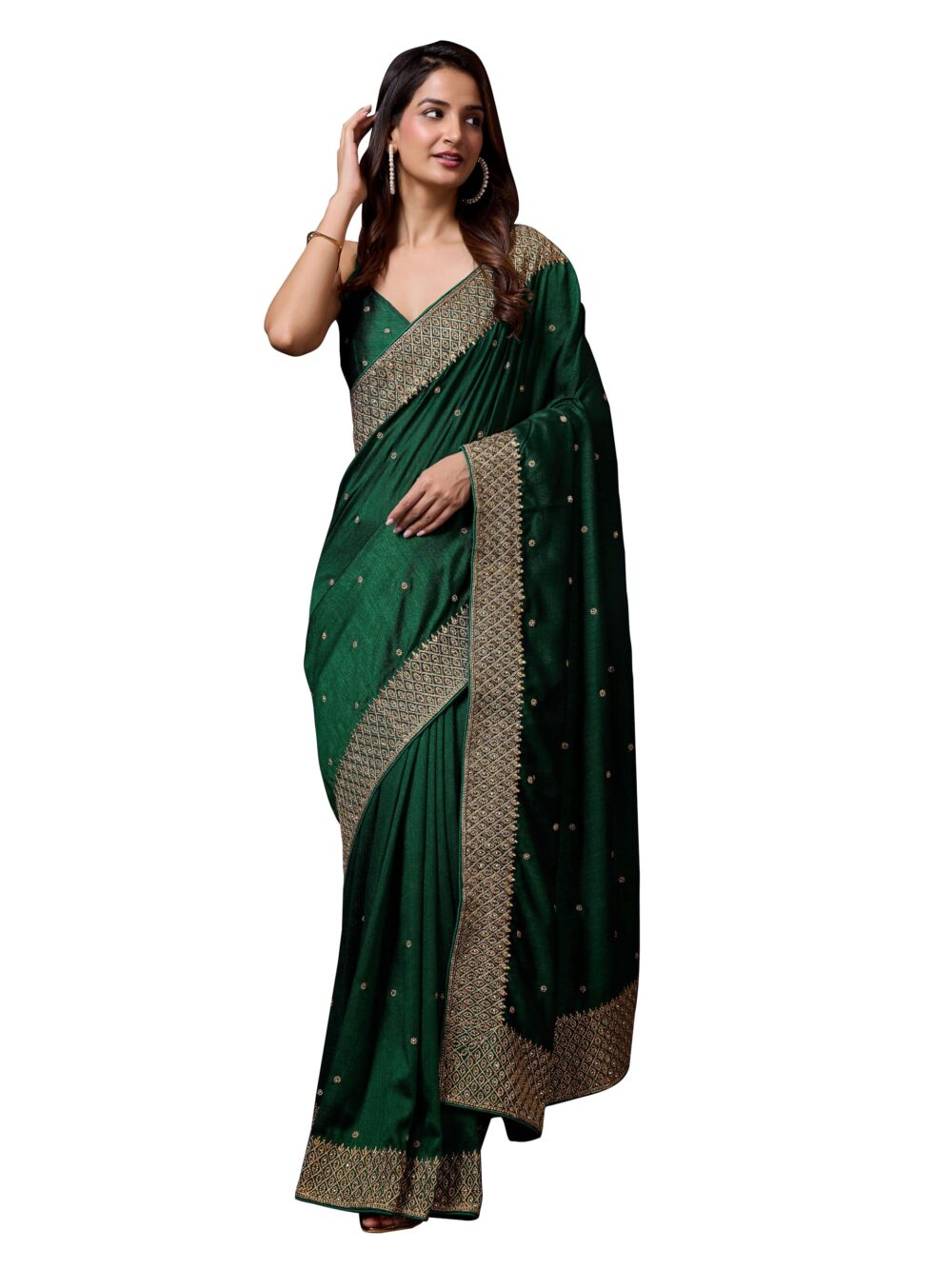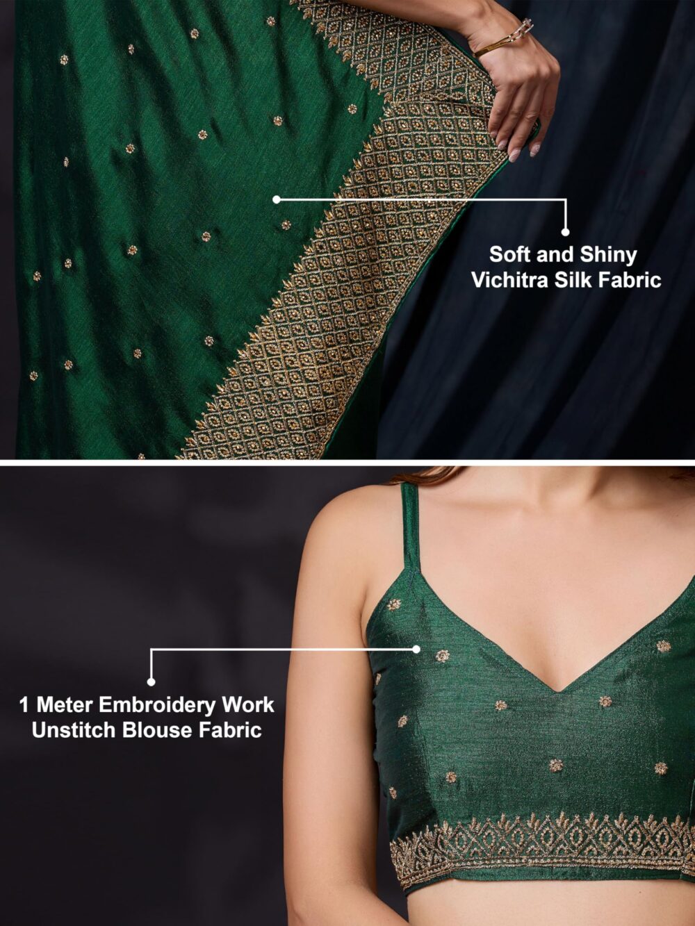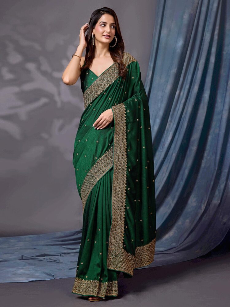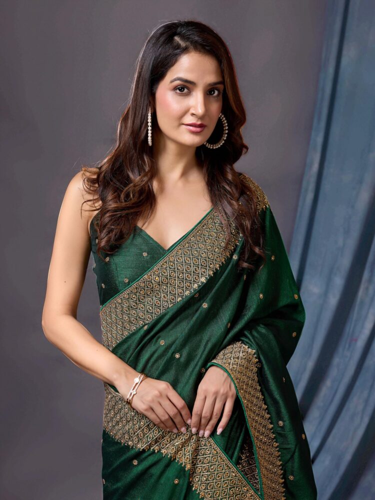 - Color: Saree: Dark Green||Blouse: Dark Green